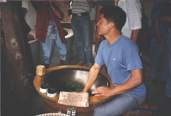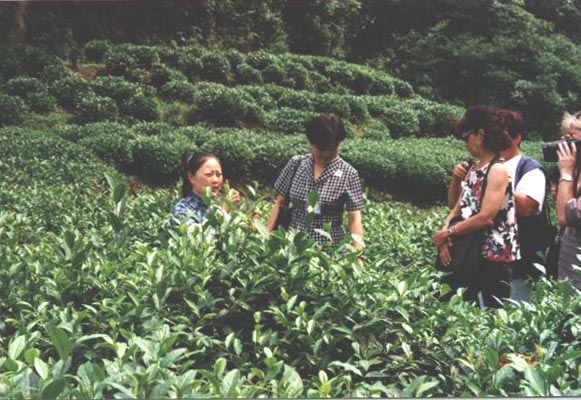 .... Teeplantage und Herstellung des Drachenbrunnentees in der Nähe von Hangzhou